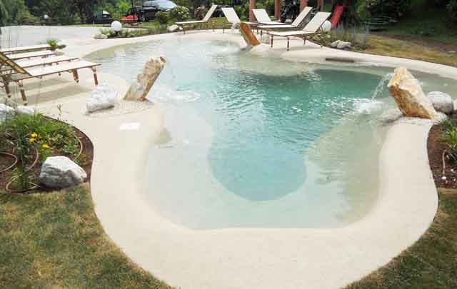 Easy maintenance with very low electricity consumption, compared to regular swimming pools. Special resin marble pebbles, and marble sand resinous at the bottom, guarantee a solid construction, naturalness and comfort.
